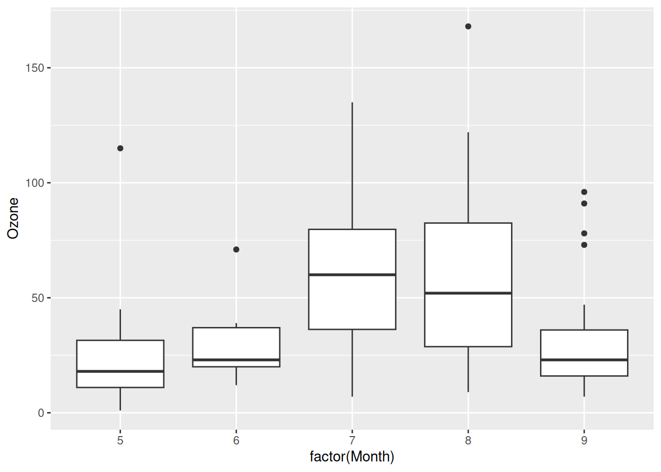We’ll look at the airquality dataset available in base R, which gives daily air quality measurements in New York from May to September 1973. You can pull up the codebook with ?airquality in the Console.