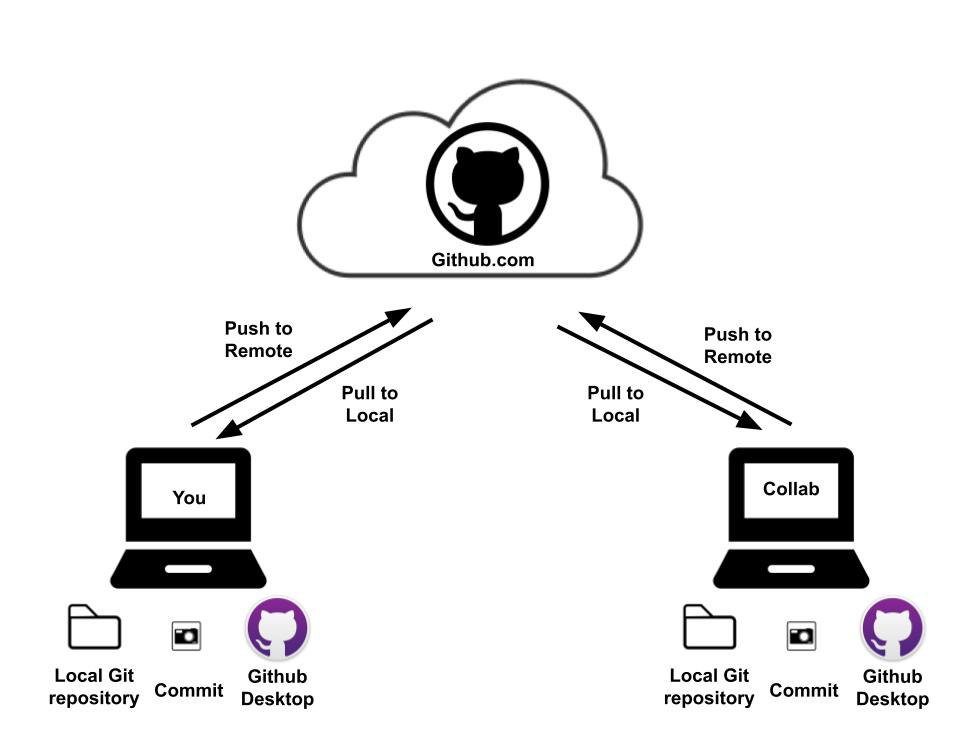 - Pull: To see what your collaborators have done, users must pull any new commits from the remote server (typically Github).